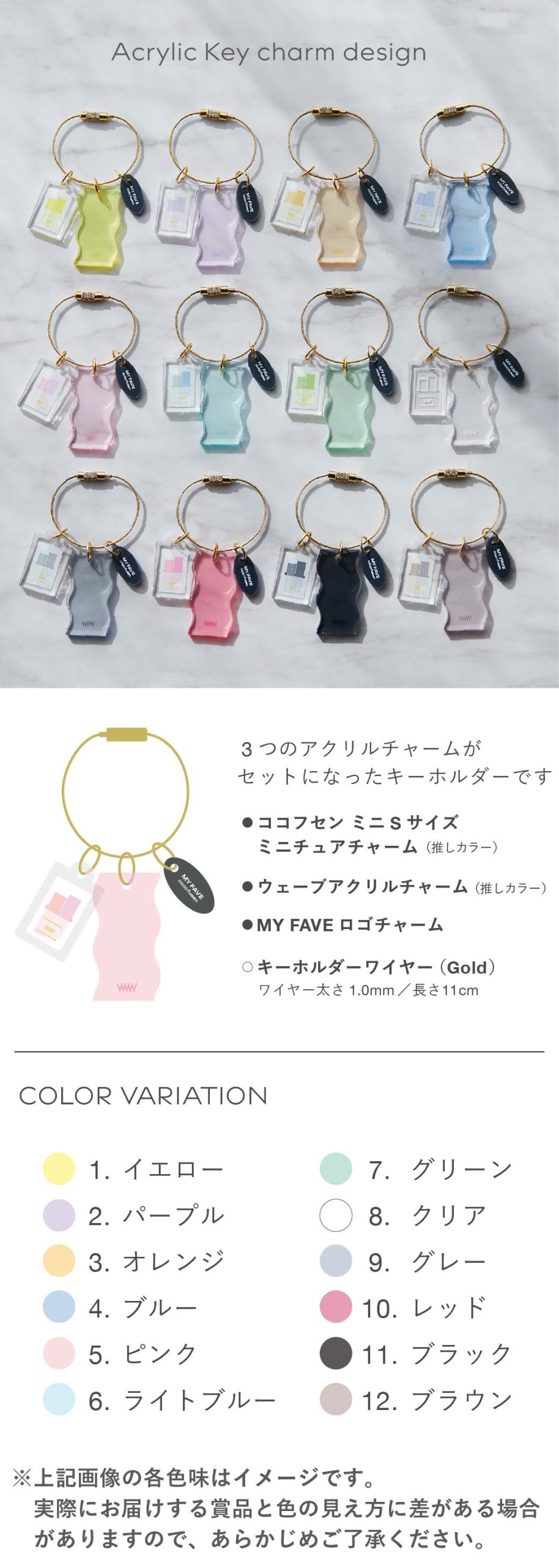 〈MY FAVE ミニクリップ&ココフセン〉特製デザイン “推し色”アクリルキーホルダー(非売品)…1個