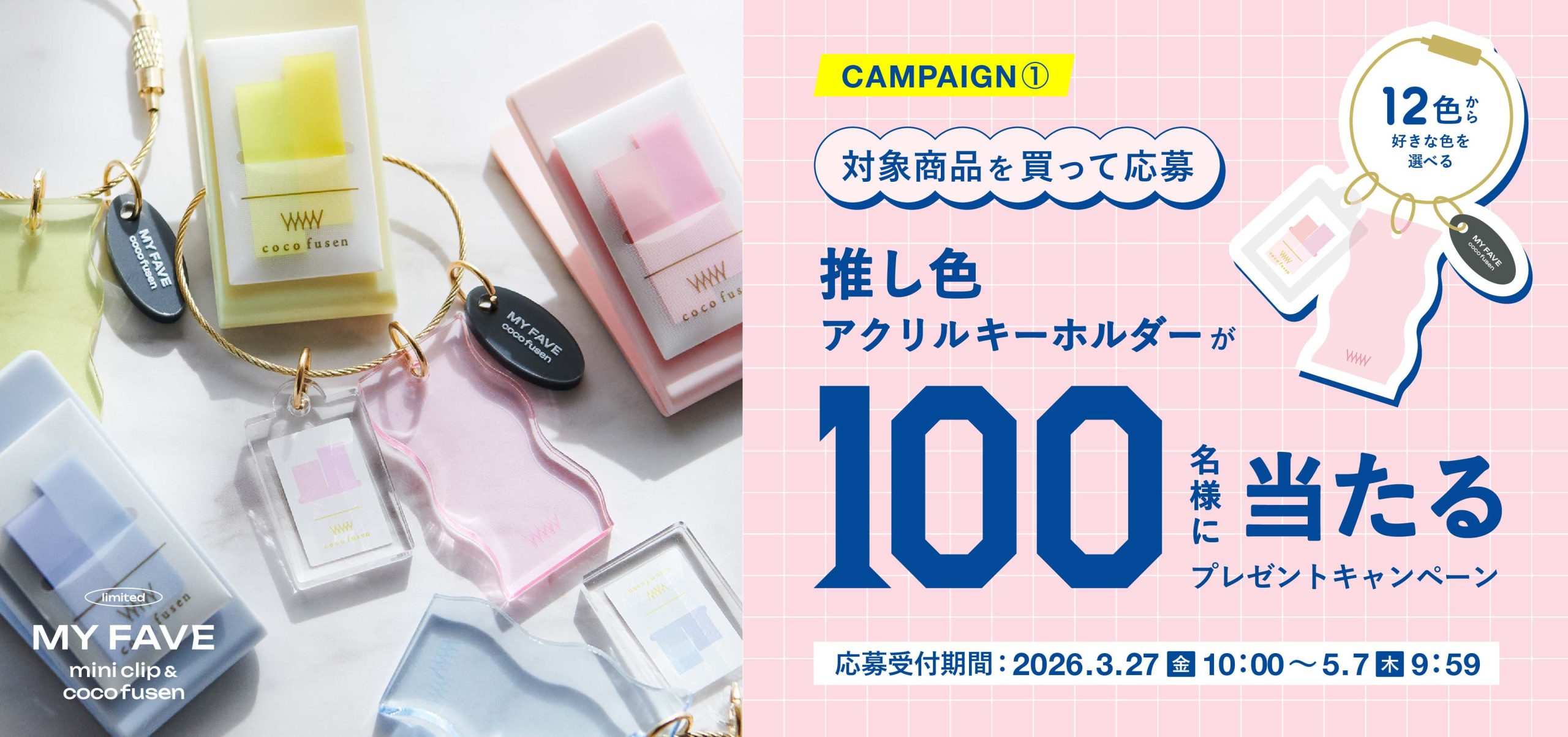 “推し色”コーデも楽しめる、ワントーンカラーがかわいい『MY FAVE ミニクリップ ココフセン』&『MY FAVE ココフセン』の発売を記念し、2つのプレゼントキャンペーンを実施します。