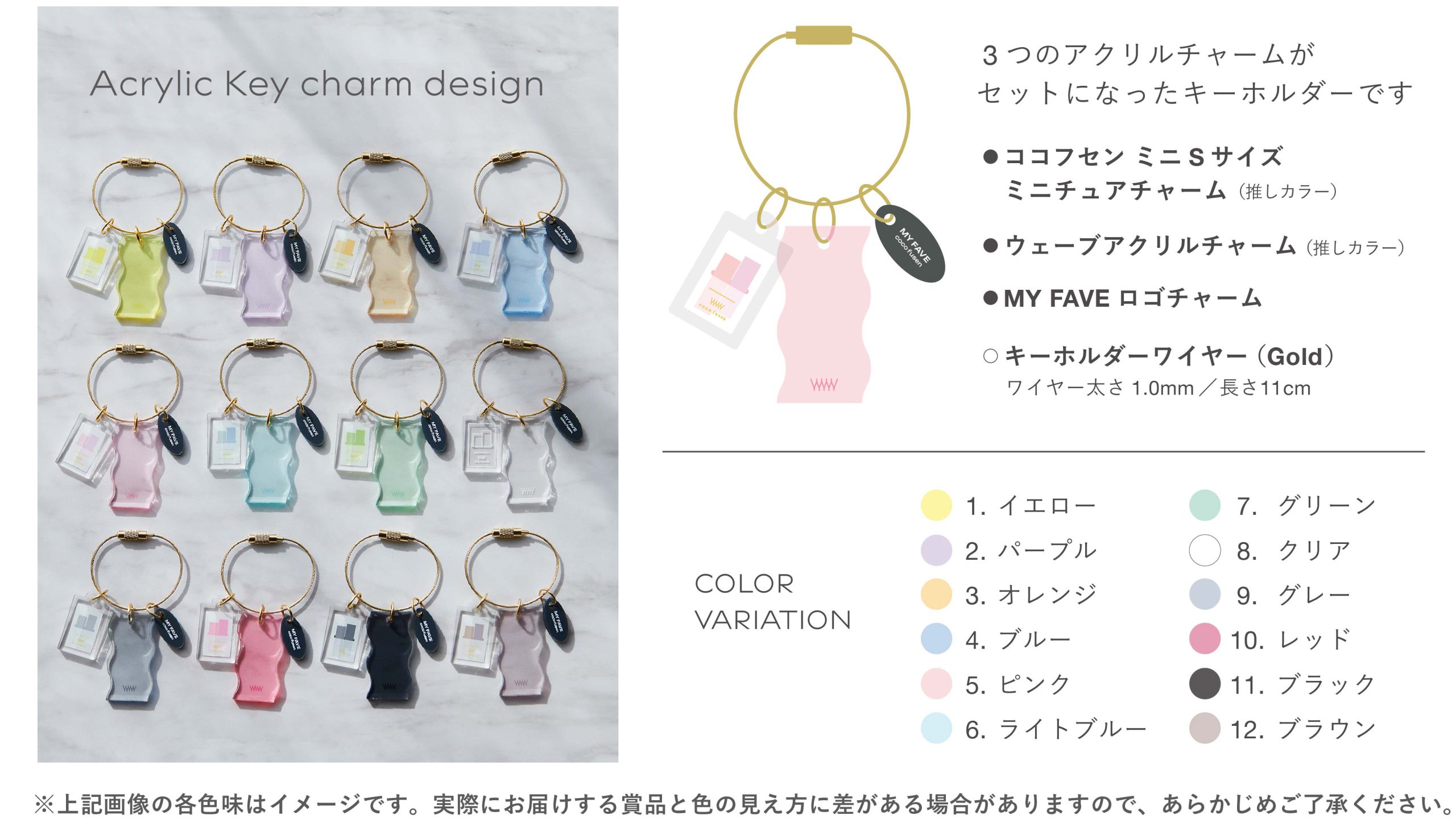 〈MY FAVE ミニクリップ&ココフセン〉特製デザイン “推し色”アクリルキーホルダー(非売品)…1個