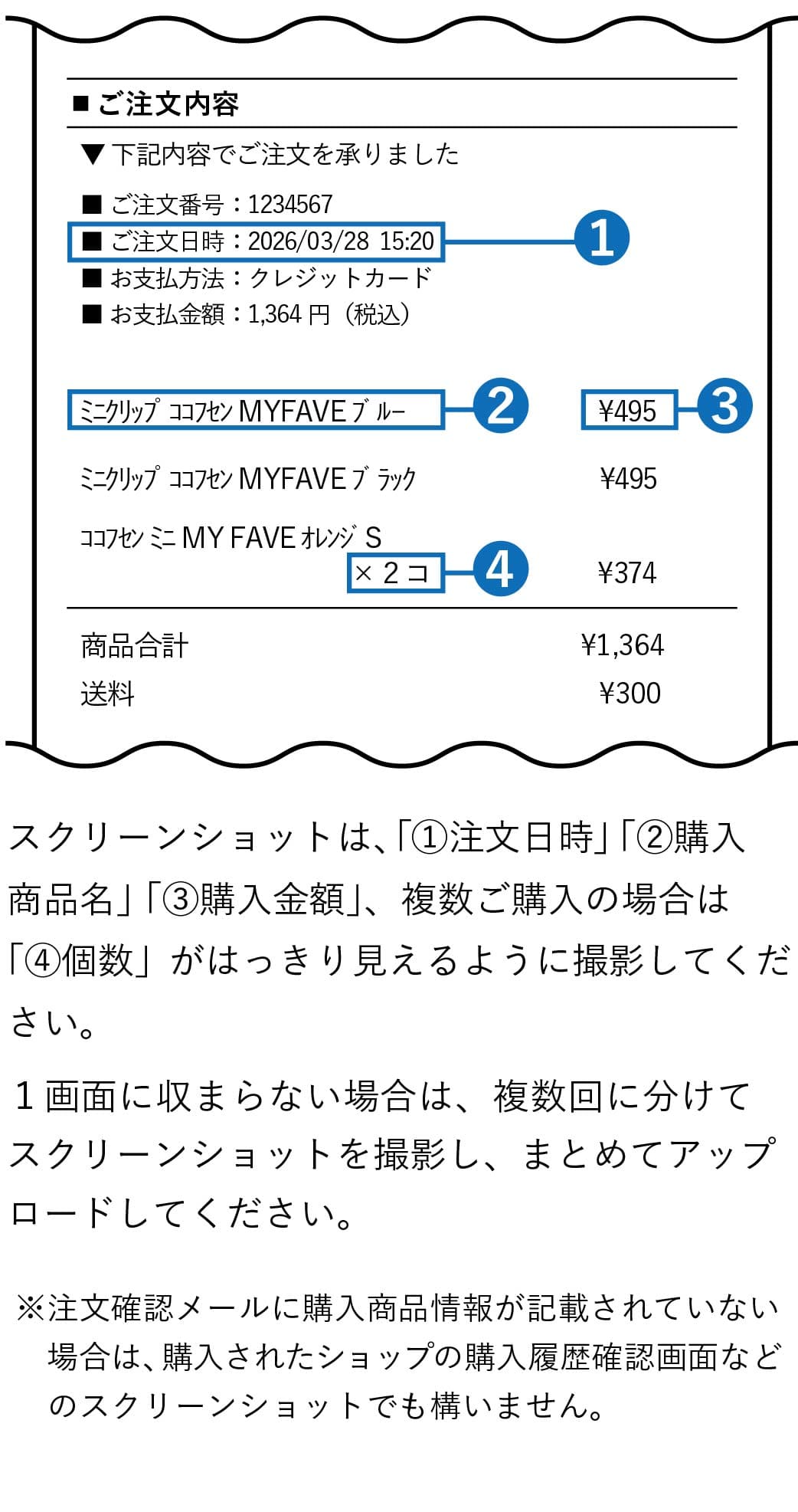 アップロードする購入画面の画像について